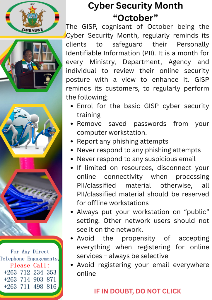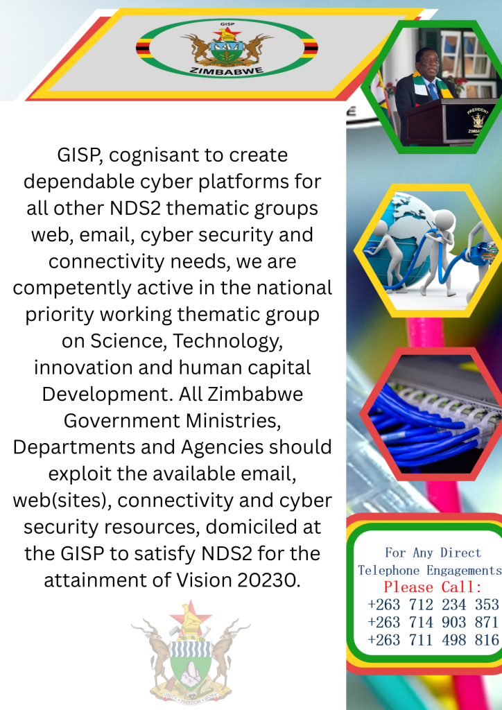 The GISP is Government owned and controlled Internet Service Provider for the Government of Zimbabwe’s Ministries, Departments and Agencies (MDAs).
